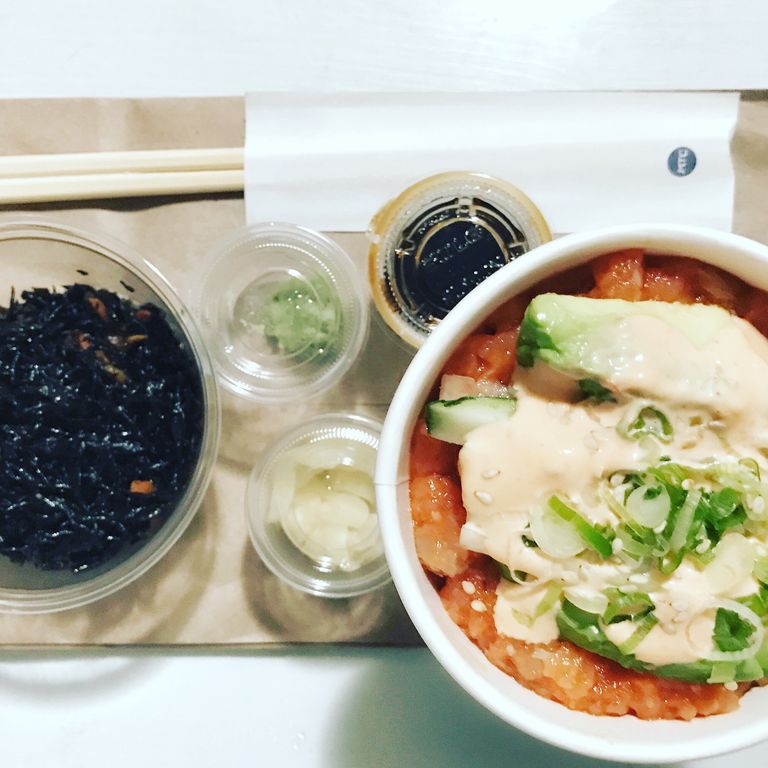 スパイシーサーモンをオーダーしました。アボガドも入っていて、酢飯はいいですね。お惣菜も充実しており、お兄さんにひじきを指さされて「これ、すごくオイシイヨ」と日本語で言われてしまったので、「じゃあこれも!」と買うしかないですね。(笑) 確かにいい味付けでおいしかった。日本人が経営しているから間違えないでしょう。