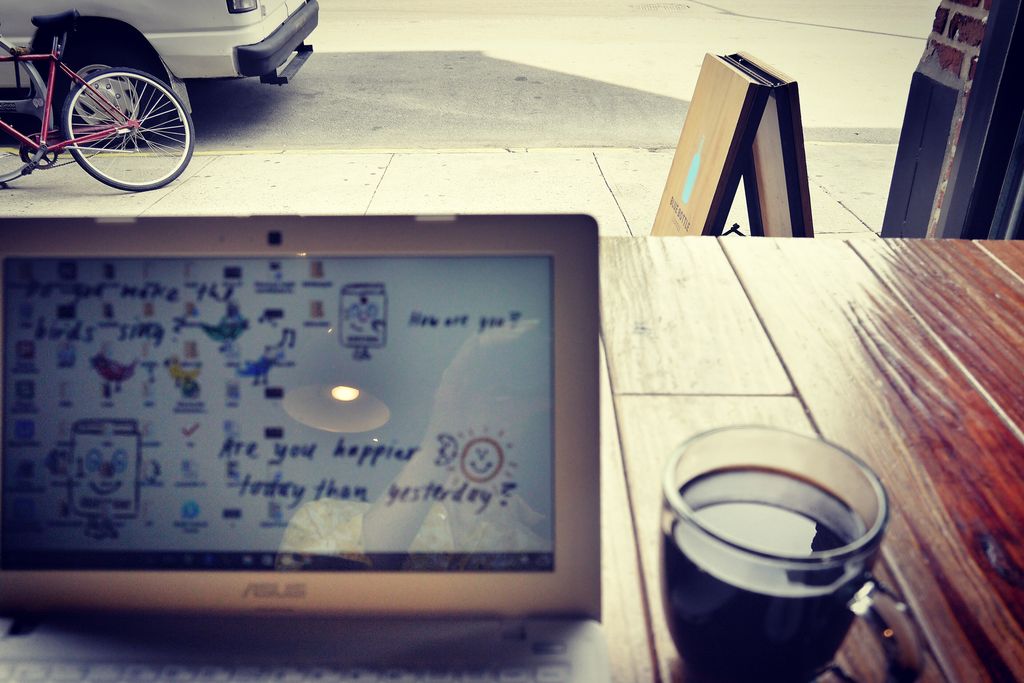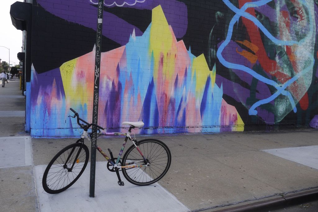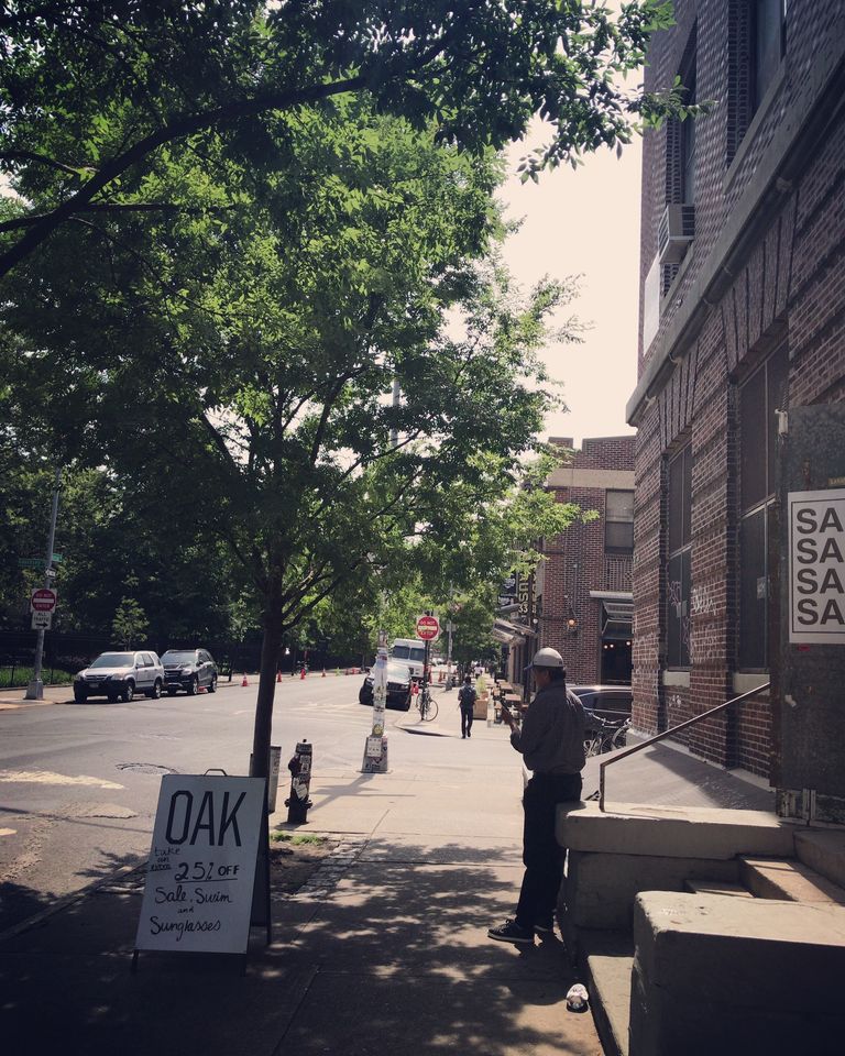 それからまたノマドをしようと思っているカフェへもGoogle mapでピンを定めて直行です。そこから20分もまた歩くことに?! パンケーキの腹ごなしもかねて、街を感じながら歩いていきました。右手にマンハッタンが常に見えている感じが、ここはブルックリンなんだよな、という気分を盛り立てます。高い建物がないので、緑もずっと多くて、空も広くて、たまにブロックにアートがしてあって、住んでいるひとも見えるのがブルックリン。NYよりやっぱりどことなくのんびりしてますよね。カフェも平日ですからたいていは空いているし。そのわりにカフェ&BAR率が高いという不思議な場所です。