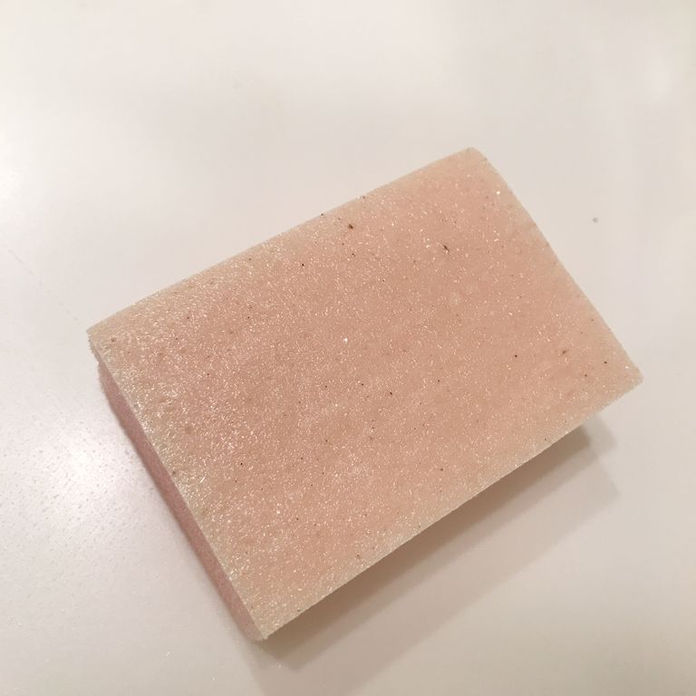 そして、セットの中には15ツール入れるのですが、「最後のスポンジ」だけがまだ決めかねています。やっぱり「鏡のウロコとり」かなと思い、いくつもある種類のなかから、確か使ったことがあると思われるスポンジを買ってきました。帆立貝の研磨剤ということで、美しい輝きを放っています。