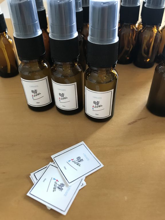 先ほど、8.19 UPDATE Highlights EVENTでプレゼントするオリジナルアロマスプレーの調合をしていました。UPDATEシリーズのEVENTに香りのプレゼントがなかった場合とあった場合を比較したら、やっぱり香りがあったほうが、脳への働きも違うものだったと思います。嗅覚からの刺激が、最も脳に作用する時間が短いそうなのです。