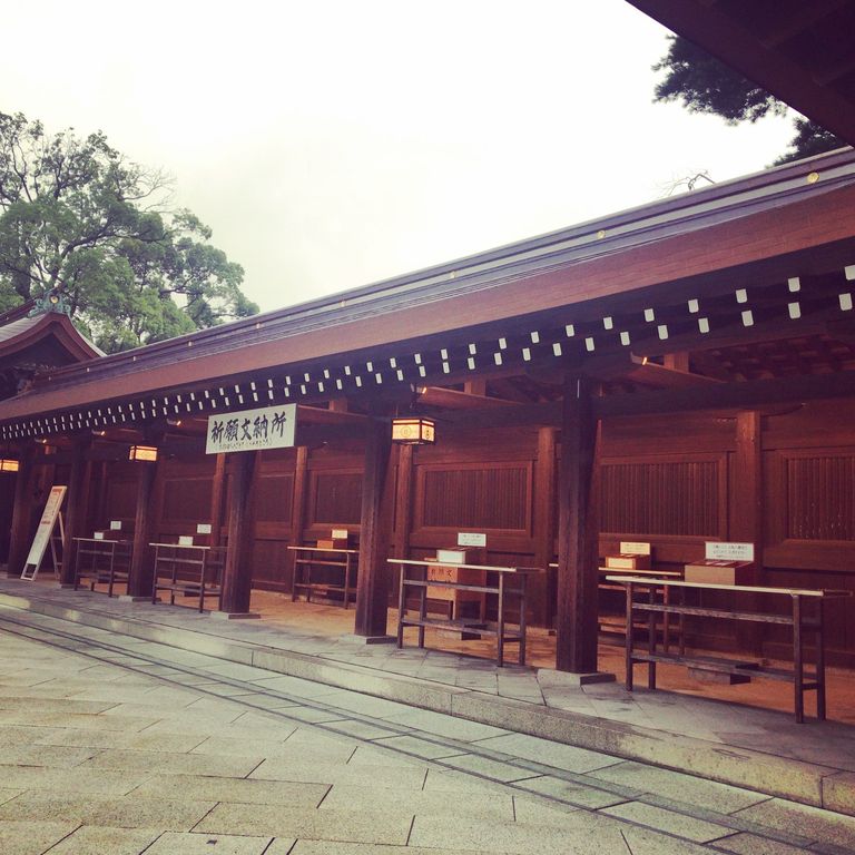 雨のため暗かったので、願い事コーナのライトがオンになって、明治神宮はオレンジ色の光だっただと初めて気づきました。小雨がまだぱらついていましたが、霧雨だから傘なしで再び参道を戻りました。自分の心が随分静かだなと言うことに気付きました。そうすると、なんだか明治神宮パワーがそのまま体の中を通っていくようなことになるのではないか? と。