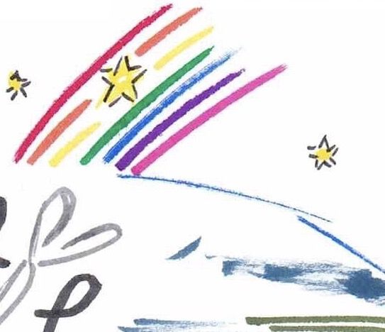 Blogger Meets YouTuber EVENTの絵を作成時、英会話のインストラクターに「ここに(宇宙空間を指さして)虹を描いて!」と頼むと、「宇宙に虹がかかるなんて、世界初じゃない?!」と驚かれつつも、楽しく描いてくれて、それが印象に残っていたのか? 翌朝はすごい虹の夢を見ました。