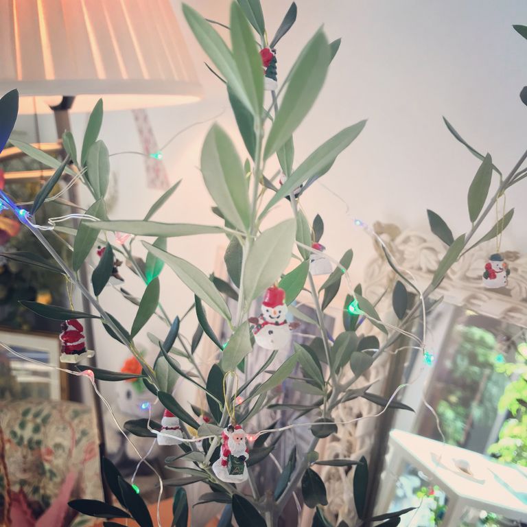 オリーブをクリスマスツリーにして。 2017.12.07 01:21 毎年恒例の部屋のクリスマスツリーディズプレーをしました。いつもならばコニファーを買ってきて飾るのですが、ちょうどいい大きさのコニファーが見つからなかったため、わが家のオリーブをクリスマスツリーにしてみました。 ミニサンタとミニスノーマンをオリーブの枝に飾り、赤、青、緑のワイヤーライトを絡めてできあがりです。 夜バージョンはまた今夜にでも撮影してUPします!