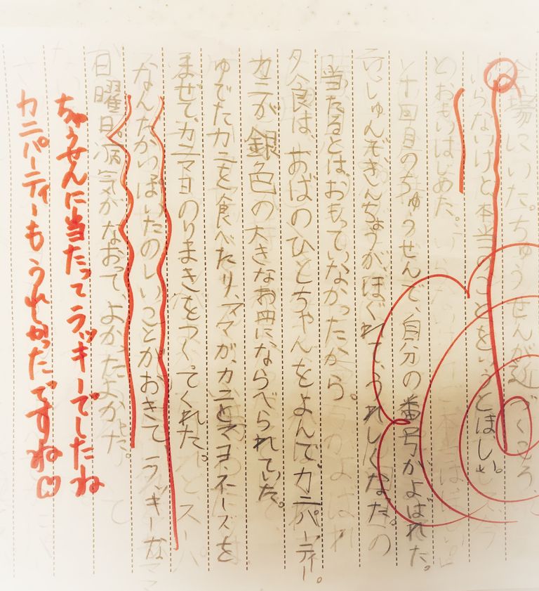 母のアドバイスで進化できました! アドバイスと言えば、先日ゆめちゃんの「5分間日記」の宿題を添削指導しました。その後どうだったでしょうか? フィードバックを見せてもらいました。