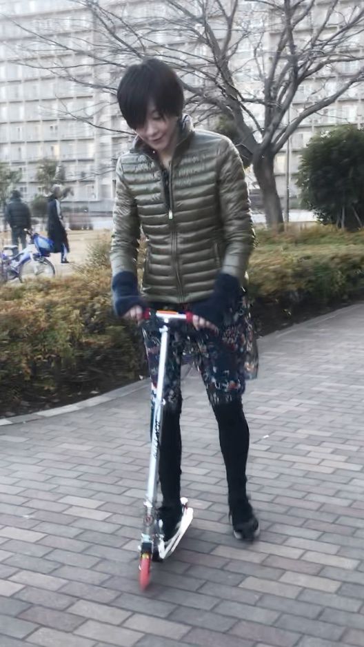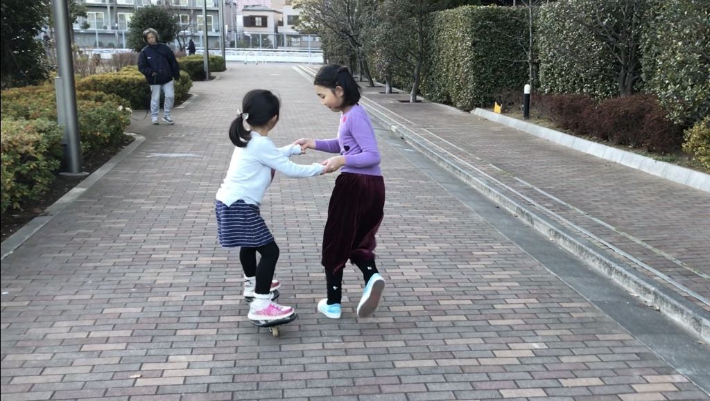 キックボード。よく街中で見かけるから、私も乗ってみたかったんですよね。これは練習なしですぐにできる遊戯です。漕ぐのが速くて、ゆめちゃんにびっくりされました。やっぱり、身体能力が向上しているのを感じます。