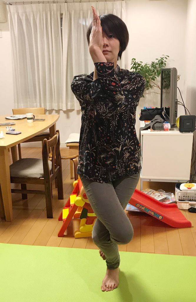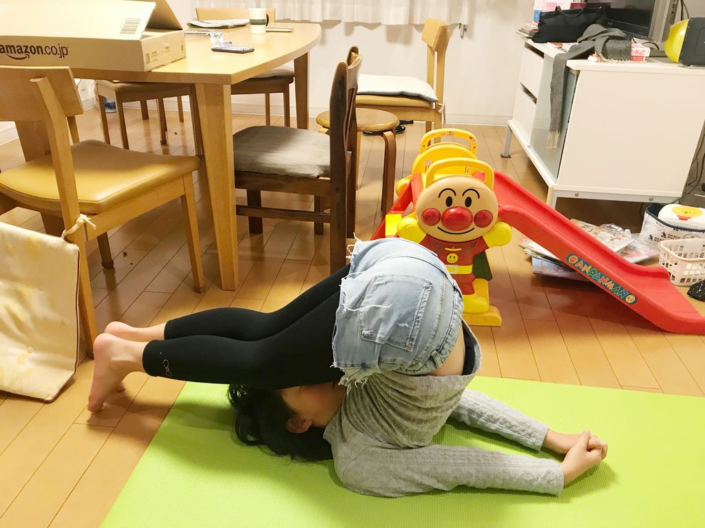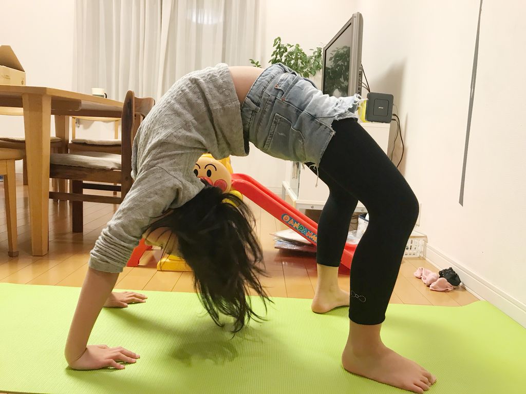 その間に、私とゆめちゃんは「ヨガ」をすることに! ネットでヨガのポーズを調べながら、「これ出来る?」と次々とチャレンジしてみることにしました。バレエをやっているから、体が柔らかいのは前提ですからね。どんなポーズができるかしら?