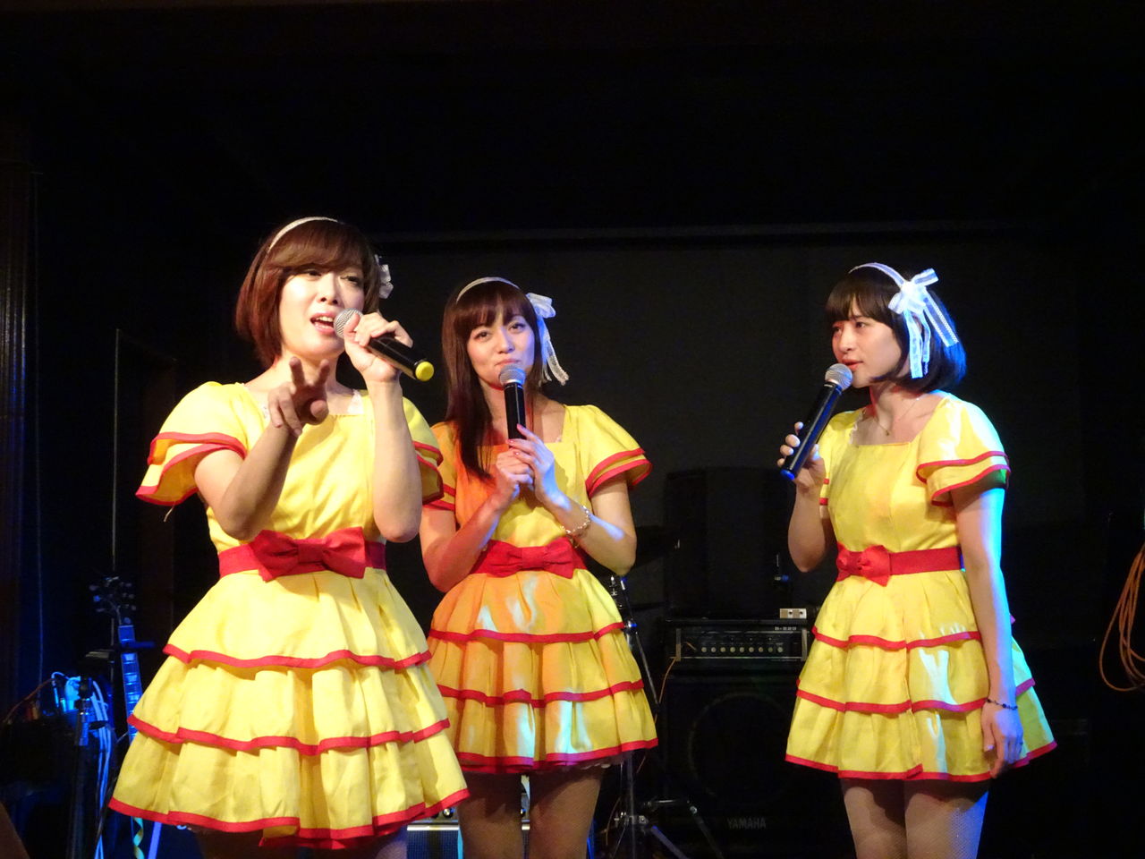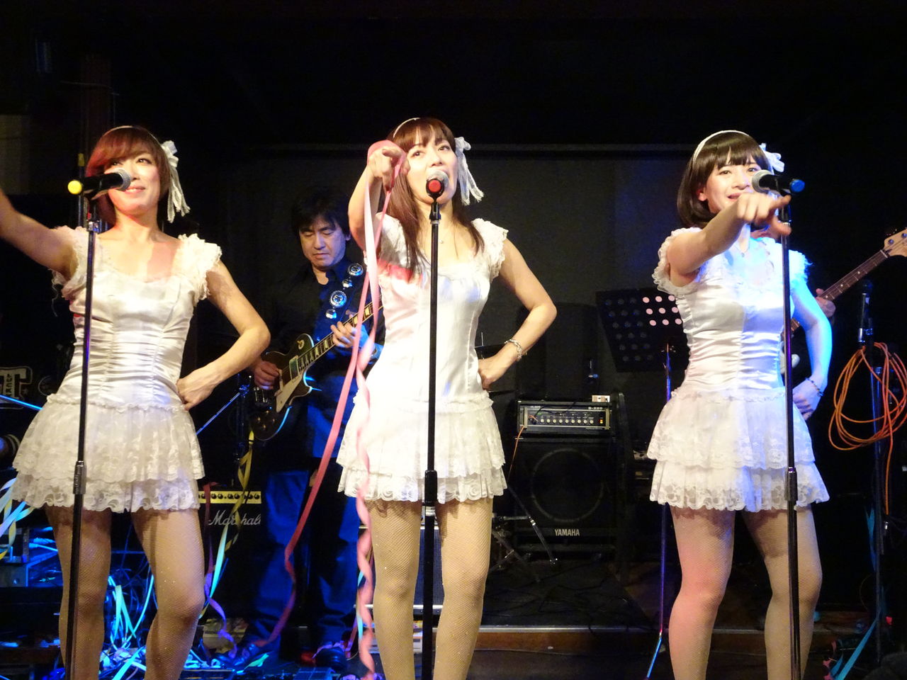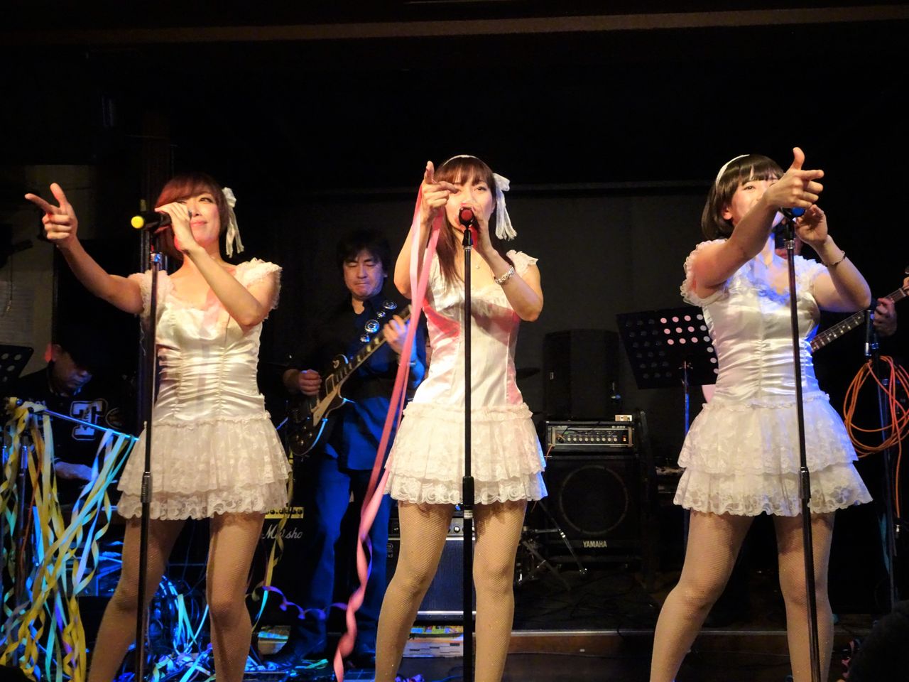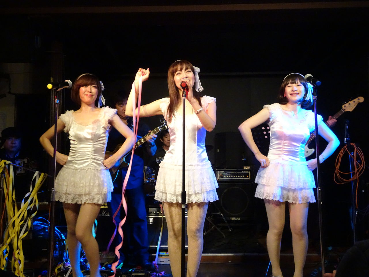 スイートポップキャンディは3番手(トリ)での出演。メインはカラオケでのステージ。紙テープOKをいただいていたので、最近紙テープを投げそこなってきたスイートポップキャンディのファンのみなさんやコルコバードのお客さんたちが紙テープを投げての応援で盛り上がりました。