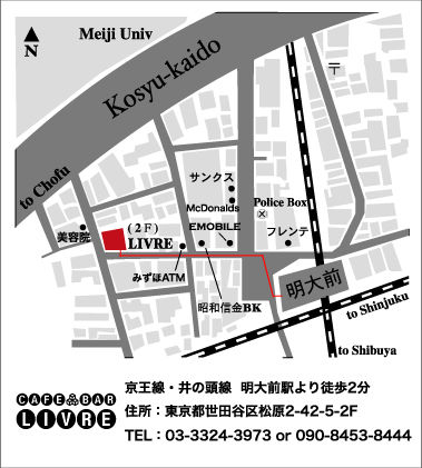 Tel: 03-3324-3973 /Mail: cafebarlivre@gmail.com