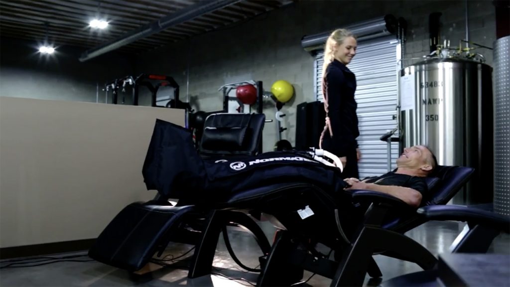 海外では、下肢部分にエアマッサージ器を装着し、このPerfectChairでスポーツ後のリカバリーとしても利用されています。