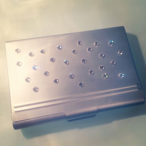 名刺入れも新調が必要です。とりあえず、スワロが余っていたので、アルミ名刺入れに、専用ボンドで、デコレーションして対応です。手づくり感満載になってしまいましたね。