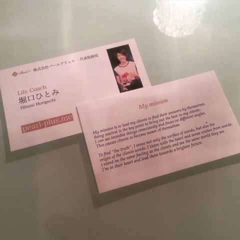 Life Coachであること、WebsiteのURLがわかること、それだけで十分です。後ろの英語はあまり読まないと思うので、デザインです。(笑)