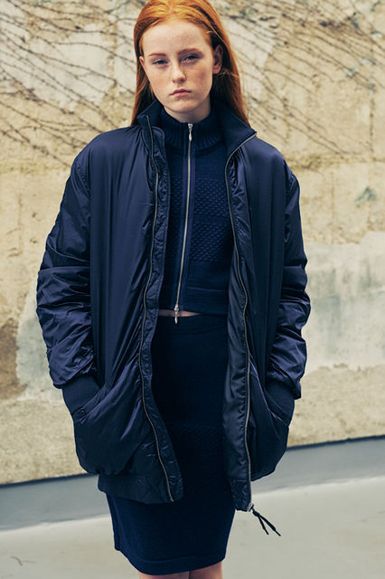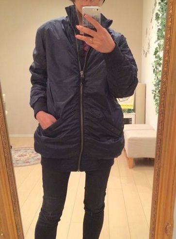 お!ネイビーのダウン?ブルゾン?ちょっと個性的な形。とっても軽い!しかも36000円の50%OFF。→試着。北欧のブランドということで、コペンハーゲンからのようでした。