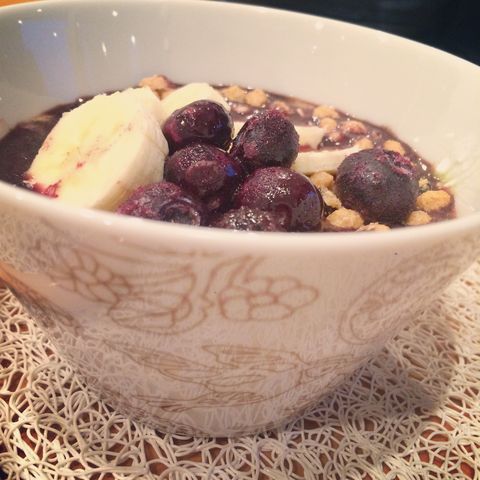 アサイーだけだと、「なぬ?」という感じの、いわば地球の味(?)ですが、バナナ、メイプルシロップ、ブルベリーも組み合わせると美味しくなりました。やはりグラノーラとも相思相愛ですね。