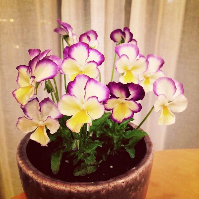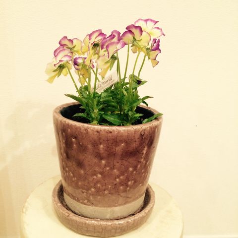 1つ目は、ビオラです。気に入った鉢をインテリアショップで既に購入していました。それに合いそうな花を探していたのです。丸の内のお花屋さんで、ぱーっとお花の方から私の方に飛び込んできた感覚で、こちらのビオラをGETです。