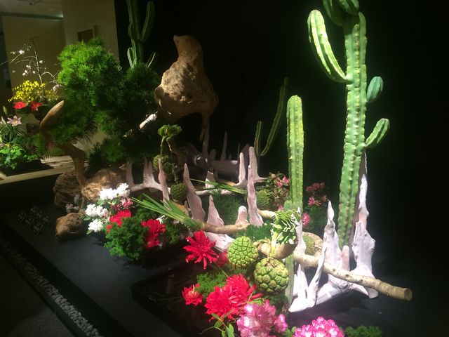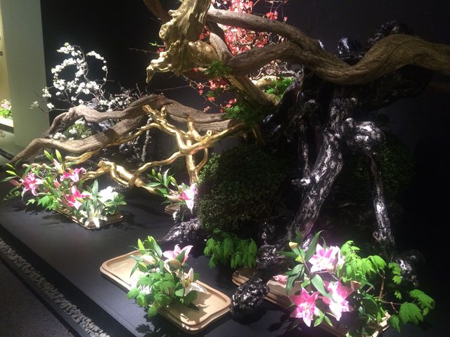 器、お花、デザイン、光、色、空間…いろいろな緻密な要素が奏であい、ただただ、圧倒されました。美しい神秘的な生け花の世界。エナジーチャージさせていただきました。Aさん、招待券&お茶券ありがとうございました。