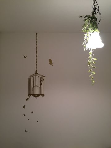家にもどり、イメージしていた場所に吊るしましたが、60センチ1本ということで、インパクトがかなり薄く、再度考えることに。と、突然思いつきました!ライトに絡ませよう!