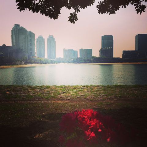 友人は体を施術する仕事なので、このモデルさんのポーズをピックアップし、東京湾を背景にポーズを決めてもらいました!どこもよっかかるところがないし、難しいポーズなので、3秒も立っていられないうちにシャッターを押しましたよ。