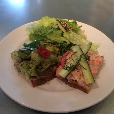 ランチはヘルシーに。嫌いなキュウリがサーモンの上にのっていたので、どけました。(笑)