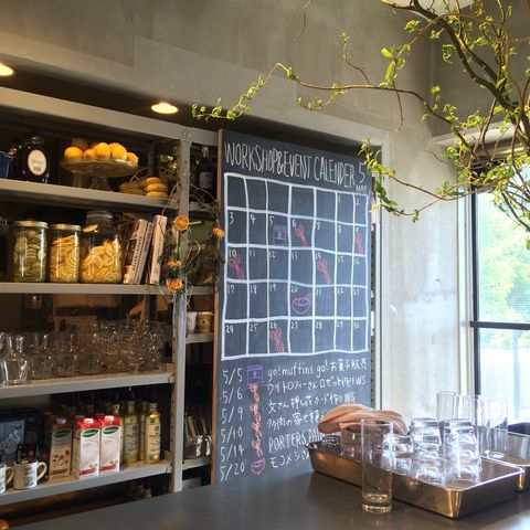 ブラックボードに、ワークショップのスケジュールが書いてありました。きっと、このダイニングテーブルが、ワークスペースになるのでしょう。インスピレーションが湧きそう!