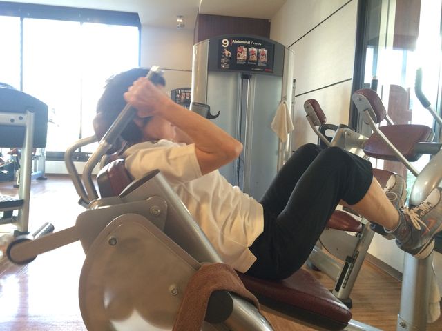 この日は、カイロ、ジムというプランで、母もだいぶ癒されていたようです。ウォーキングのあと、いつも苦戦している腹筋マシーンに母が自ら向かいました。それで、いつものとおりやってみたところ。