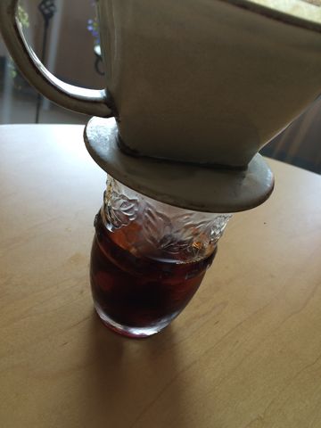 朝からでもIced Coffeeを飲みたい季節となりました!本日はグラスに氷を入れてドリップタイプです。これは短時間で作れるバージョンです。いつもの豆の2倍の量(20g)+水は少なめ(180cc)+グラス7分目くらいま氷をいれておき、いつもと同じようにドリップです。