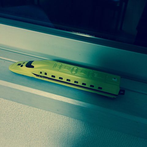 1歳半のせいくんも、お約束通り鉄道好き?!になってしまいました。(笑)数々の電車、車から、私に渡してくれたのは、ドクターイエローでした。なんで私がドクターイエローが好きって知っているのかしら?!