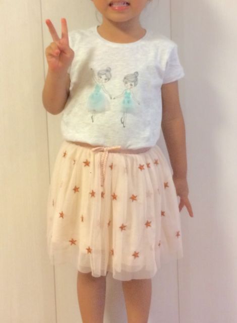 昨年、ZARAのバレエの女の子のTシャツとチュチュ風のスカートをプレゼントしたら、とても気に入ってくれたようで、よく着ていたんです。だから、今回もおもちゃよりも洋服がいいかなと思って、4歳サイズのバレエデザインの物を選びました! ディズニーキャラクターのアリエルも好きなので、アリエルのミニタオルもプレゼントしました。