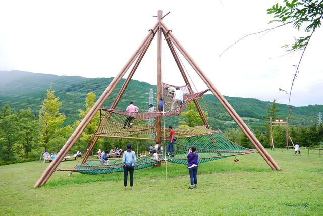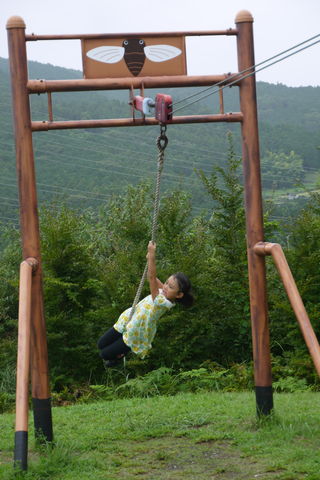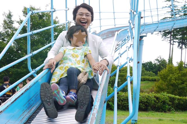 駅からバスに乗って、たくさんのアスレチックやロング滑り台のある公園へ。着くや否や、ゆめちゃんと、ことちゃんは、遊戯のほうへかけていきます。