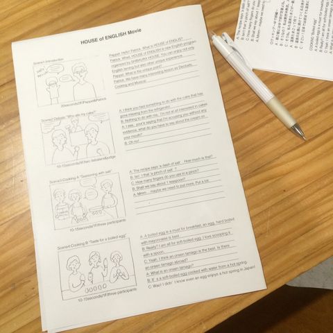 事前に、エプロンと白シャツ、黒パンツ持参との案内があり、何をするやら内容は当日ということで。当日夜7時にSHIBAURA HOUSE集合しました。台本が用意されており、今日、全くの初対面の人といきなり、英語劇となりました。(笑)