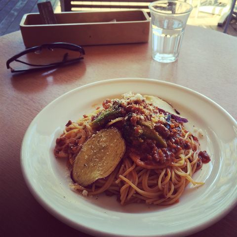 ランチは、上野公園内のカフェへ。テラス席に座って、秋野菜のミートソースパスタを美味しく頂きました。