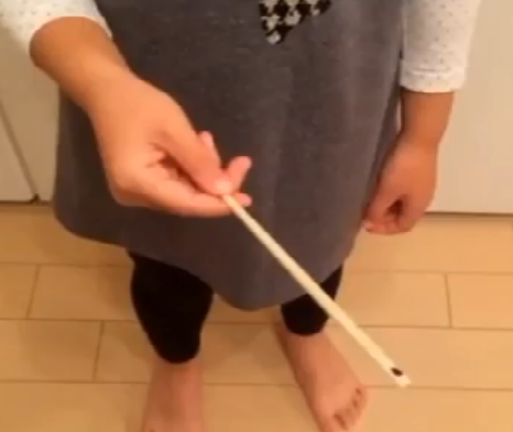 ゆめちゃんがマスターしたのは、割り箸を鼻の穴にいれるというイタイタしいマジックと、もうひとつの割り箸マジックは、少しだけコツがいりますが、簡単で驚き度も高めです。ちょっと練習して、自分でコツをつかんで完成させていました。ゆめちゃんのマジックショー動画です。20秒で終わってしまいます。