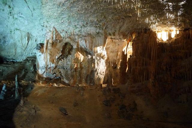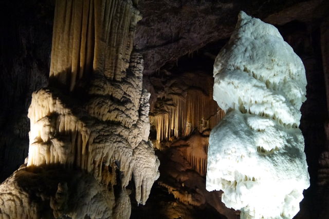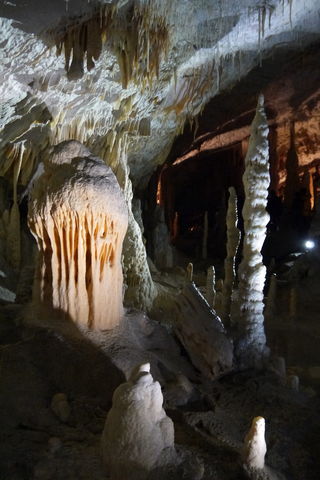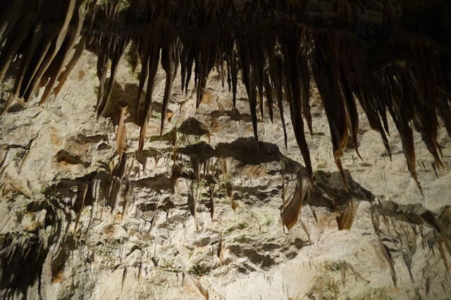 スパゲッテイーのような鍾乳石や、カカーテンンのような鍾乳石、巨大な石柱など、様々な形があります。室内の温度は常に8度でキープされているそうです。どこもかしこも鍾乳石しかない風景は、地球とは思えず、別のプラネットに来てしまったような、おまけに時がゆっくりと流れているし、鍾乳洞の中で空気が吸えているのが不思議なくらいに思えてきます。こうして見学中にも滴は滴り続けていて、次の1センチ成長させるために時が100年必要だということ。息を飲むような神秘的な美しさに、地球の鼓動を感じます。