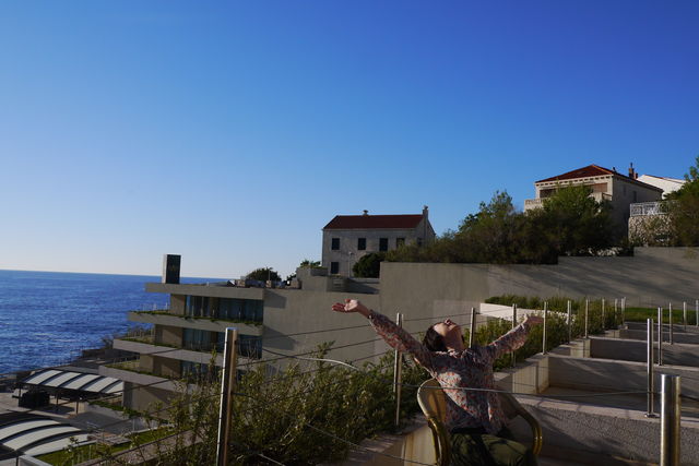 ランチのあとは、スロベニアからドブロブニクまで443㌔、どんどん南下のバスの旅です。牛が見えたり、羊が見えたり、のどかな光景から、次第にアドリア海とオレンジ色の屋根に変わっていきました。