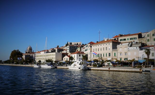 海側に出ると紺碧のアドリア海に浮かぶボートの風景、何度見てもいいものです。