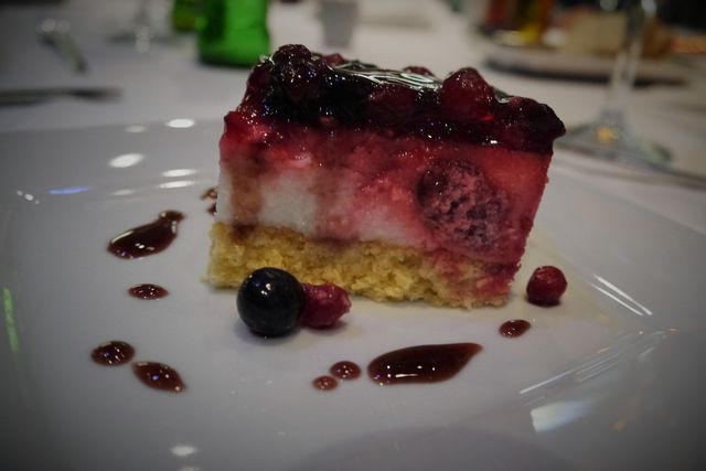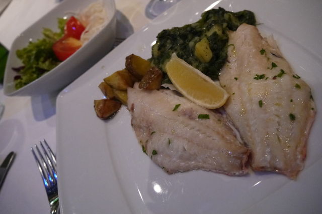 内容は、サラダ、パスタ、お魚料理、デザートです。クロアチアのビールは、ライトな感じで飲みやすいので、アルコールに弱い私もOKです。お魚もケーキも完食です。昼がイカだけだったので、相当おなか空いていました。(笑)