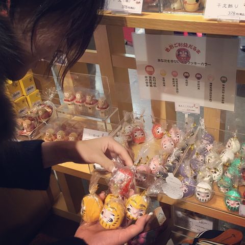 一つだけ手に取ったところで、「イエローだるまを買い占めるぞ!」という気になり、そこを知人に激写されました。(笑)周りの人へのプレゼント用ですよ。