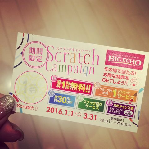 追記:ボイトレの帰りに、ライブ練習のためBig Echoへ行きまして、会計後頂いたスクラッチくじ引きをいま削ったら1等でした。笑