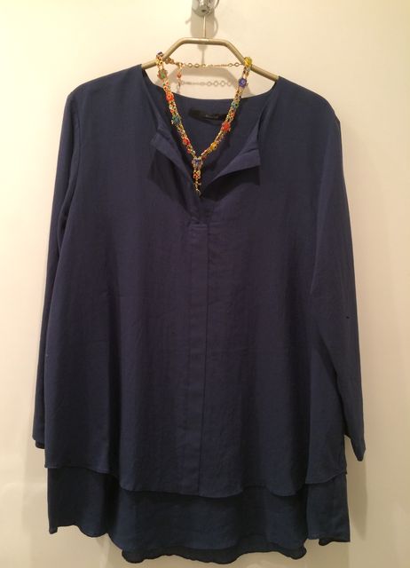 やっぱり見つかってしまいました! ネイビー好きです。裾がヒラっとしているところが、シンプルの中にもフェミニン感もあり、私が求めているバランス感です! テロンとしている素材感なので、スポットライトの下でいい感じだと思います。昨年買ったアクセとコーディネートしています。