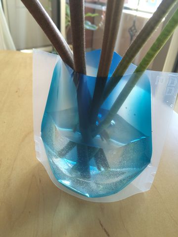 5年前くらいにParisのセレクトショップ「merci 」で初めて見つけて、その斬新なアイデアに「へぇ」と思い、人へのプレゼントとしては買ったことがあったのですが、実際に自分が使うことがなかったビニールの花瓶。一切の厚みなし、これなら収納にも困らない!これって、Made in Japanだったんですね~。カラフルなアネモネに合いそうな色、ブルーとキイロ2枚セットを選びました。