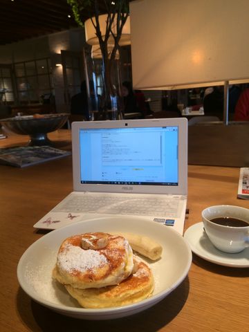 パンケーキを食べ終わったのに、周りから食欲をそそるようなガーリックの香りが漂ってきて、まだ食べられそうな勢いです。(笑)さすがに、日曜なのでラップトップを開いているひとは誰もいないですが、返ってそんな雰囲気の中にいられることが楽しさになって、脳を活性化させます。一気にブログを2つ書きあげました。