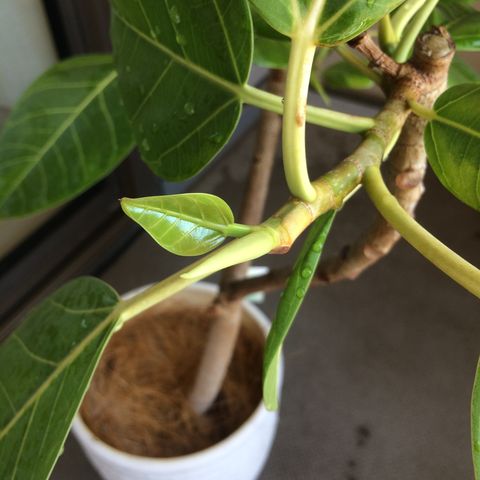 もう、このアルテシマとは9年くらい一緒に暮らしています。風になぎ倒されたり、葉が助長して不細工になったり、根がエイリアンのようになったり、本当にいろいろとありながらも、毎年GWの時期になると、新芽ラッシュが始まります。