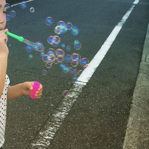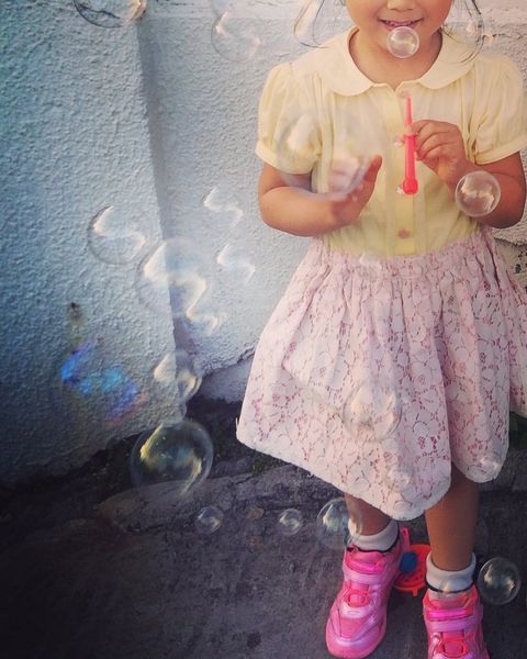 シャボン玉の写真を撮ってみたくて、白い壁の前で、シャボン玉してもらいました。