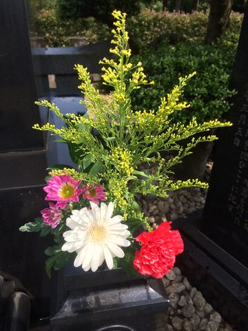 お墓は空いてます。最近の雨水が墓石に付着してたので、お線香の火が消えるまで、お墓の掃除に夢中になってしまいました。車のブルーのブラシを片手に、祖父と祖母に、ここに来る途中で、たまたま自分に合った本を見つけたことを話しながら。