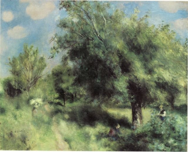 人と自然があまりにも調和しすぎているところの曖昧さが、THE 印象派。この中に、4人いますよね。遊んでいるのではなく、何かの準備をしているのでしょうか? 風や季節感、温度まで伝わってきます。