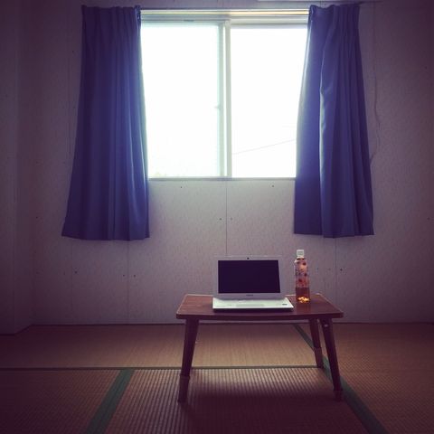 6畳一間。バストイレ共同。折り畳み机。椅子に慣れ過ぎていて、この折り畳み机での姿勢が結構つらい。欧米人はこれに苦労するんだろうなー。(笑)