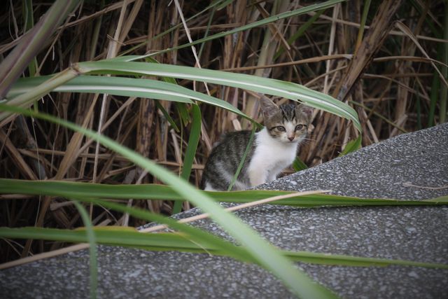道路のわきの畑から、顔だけのぞかせているその風貌がありえないほどかわいくて、猫ってこんなにかわいかったっけ!
