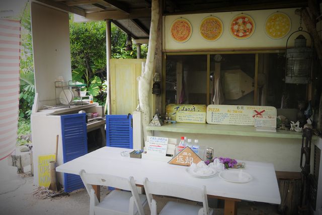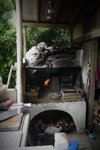 しかし、海カフェは定休日。その下に「窯焼きピザ」のお店があることも知っていたので、そちらの方へ行くことにしました。まるで、トムソーヤ島に来たかのような。小柄な店主が1人でピザを焼いていました! 水・木・土・日の週4日のみの営業で時間もランチタイムのみ営業ということで、ナイスタイミング!