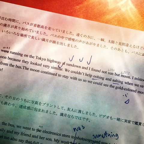 結果、インストラクターから、”I was really impressed by some of your sentences! I oohed and aahhed!”とフィードバックを貰いました。文章の下に、ニコニコマークも描いてあります。(笑)