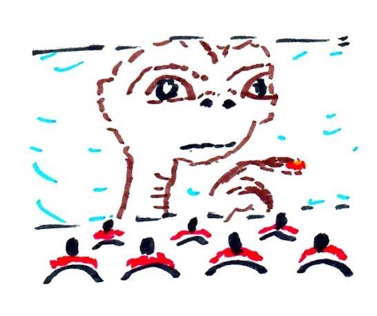 行ったレストランは、プロジェクターで映画が投影されているのですが、なんと、『E.T.』だったのです。(笑)