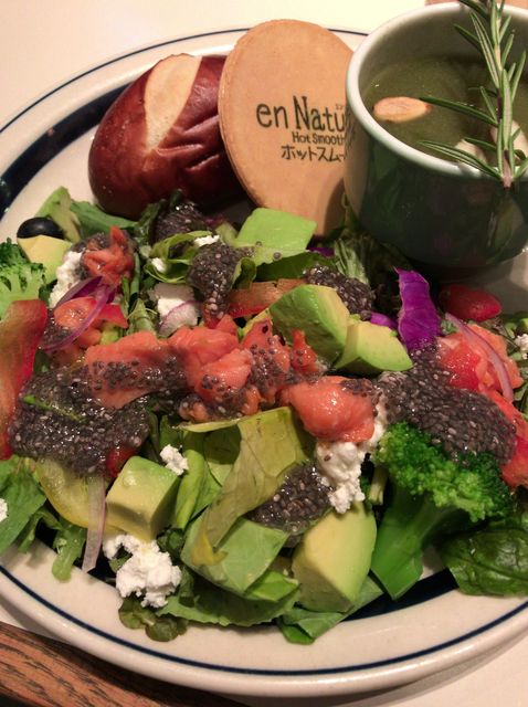 仕事、ヨガ、有酸素運動、スパ、お仕事ブログ投稿のあと、夜は隣の駅のカフェでご飯としました。仕事帰りの人が多い、たまに行く、大きなビルの1階にあるカフェです。